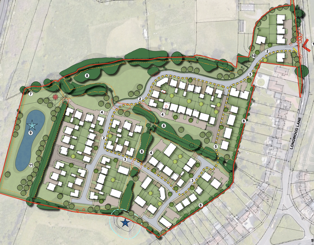 The development proposal for Longwood Lane in Walsall includes 115 dwellings comprising of a mix of market and affordable residential homes, green infrastructure and associated facilitating works, with all matters reserved except for access.